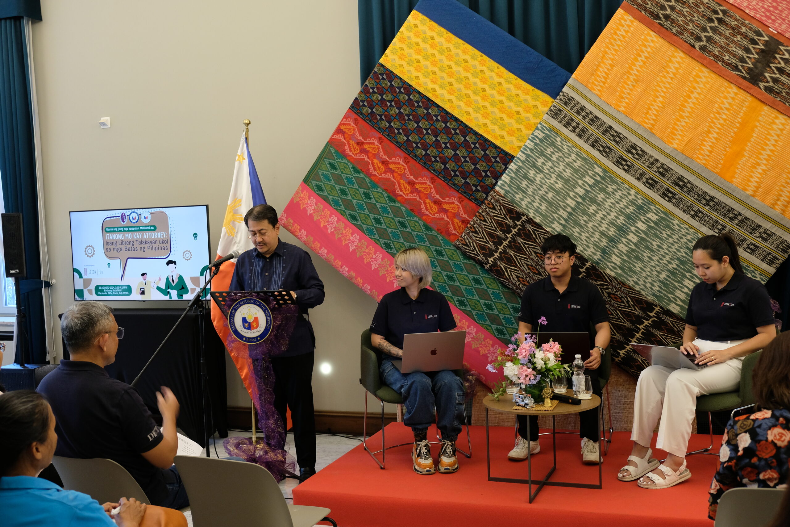 Lawyers from LGTON held a legal seminar and one-on-one legal consultations for a large group of Filipinos in Italy on 29 August 2024. The seminar drew an unprecedented crowd at the Social Hall of the Philippine Embassy in Rome, which was filled to capacity. More Filipinos arrived as the one-on-one consultations started.